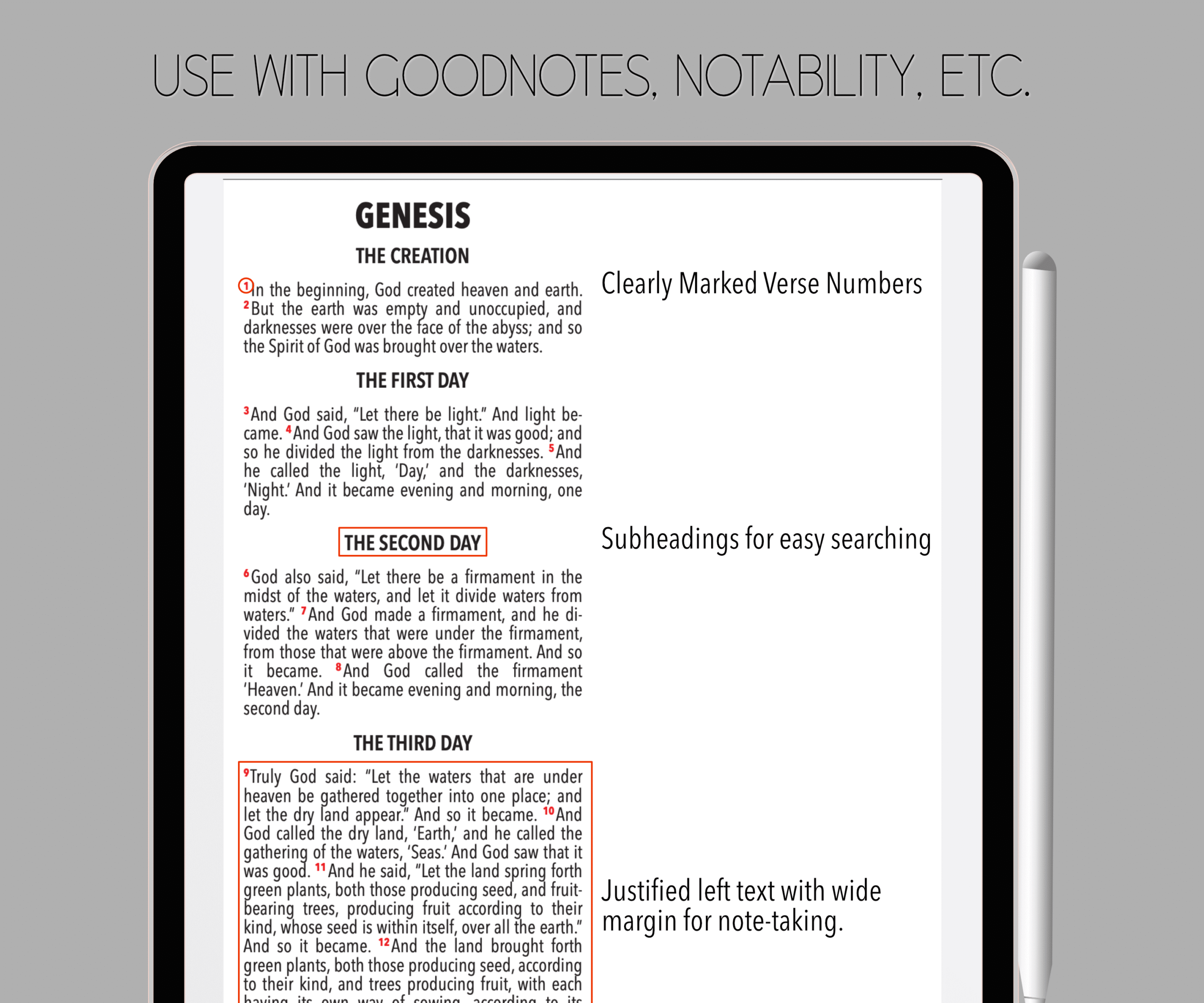 - 🟥 Verse numbers in red for fast visual tracking